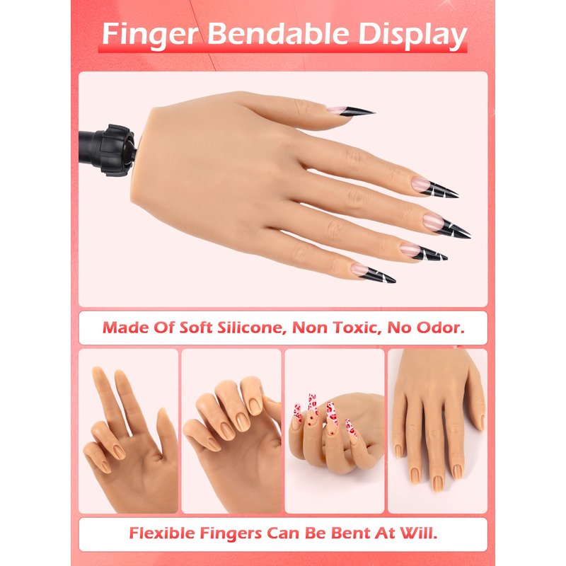 - 【Flexible Fingers Can Be Bent At Will】:Silicone hand mannequins have built-in bones in the fingers that can be bent at various angles as needed. The acrylic practice hand is reusable and clean easily, just wash it in water after use. Perfect for nail art practice, acrylic, gel and wrap practice, nail art design.