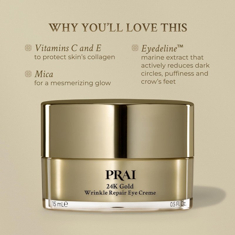 PRAI Beauty 24K Gold Wrinkle Repair Eye Creme - Anti-Aging and Anti-Wrinkle Eye Cream - Infused with Hyaluronic Acid and Real 24K Gold, 0.5 Oz