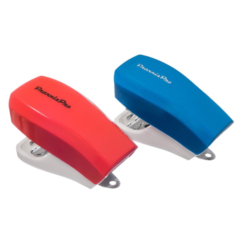 PraxxisPro Desk Accessories - Aria Premium Mini Stapler Set - with Built-in Staple Removers, 2000 Standard Staples Included - for Office, School, and Travel, Set of 2, Blue & Red