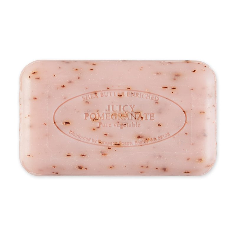 - JUICY POMEGRANATE SCENT: A scent that is fresh, exotic, and fruity with a touch of floral; soap includes an exfoliant which helps cleanse your skin by removing dead skin cells, calluses, and acne and can improve skin tone and blood flow