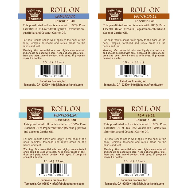 Pre-Diluted Essential Oil Roll-On Value Set Made with Pure Essential Oils and Coconut Oil (Lavender, Patchouli, Peppermint and Tea Tree) by Fabulous Frannie