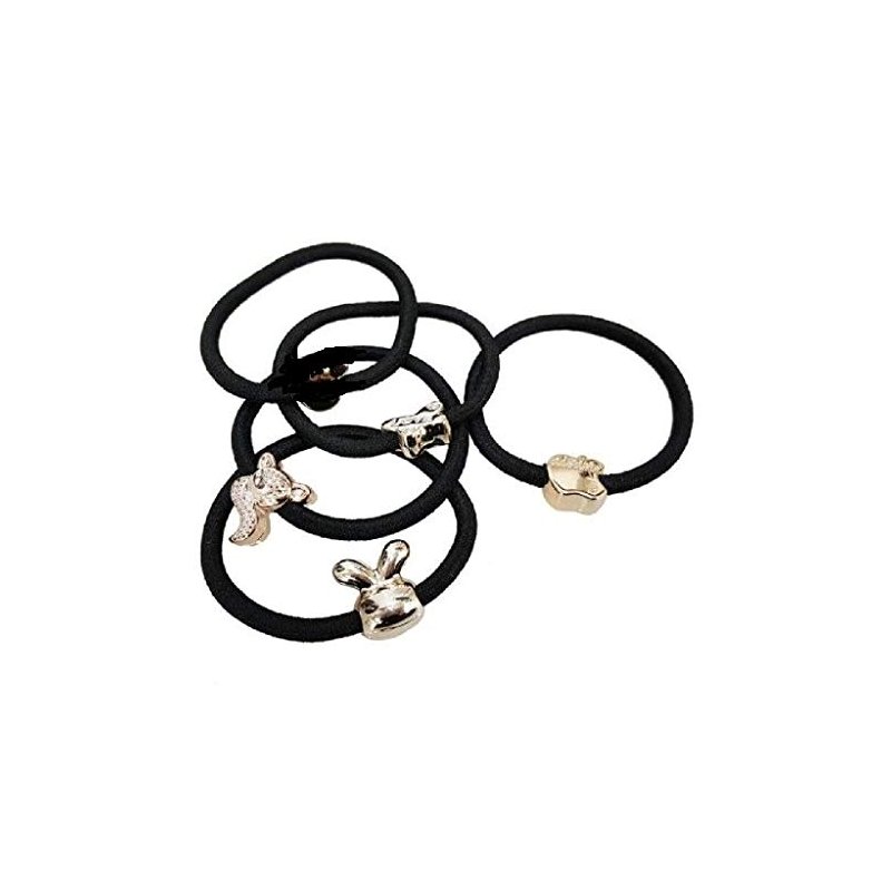 Prebear 21pcs Black Hair Ties Korean Fashion Gold Medal for Women and Girls, Elastic bands, Ponytail Holder, Rubber bands