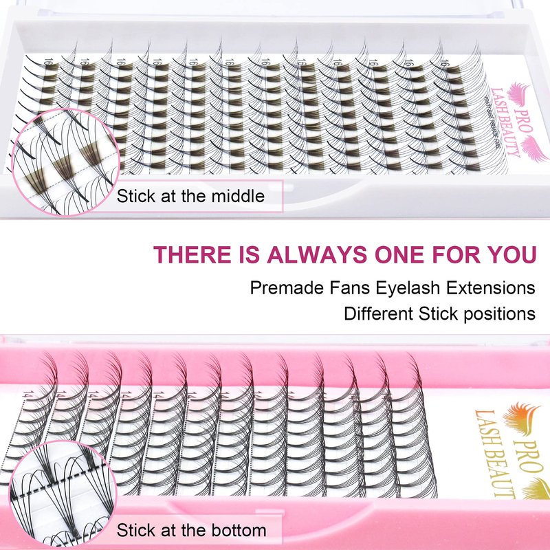 - Diverse Set Application: Premade Fans Eyelash Extensions are bonded together at the base which means they can be applied to a single natural lash to give a Hybrid/Volume/Mega look . For clients who have a few natural lashes , or want to cut down their application time.