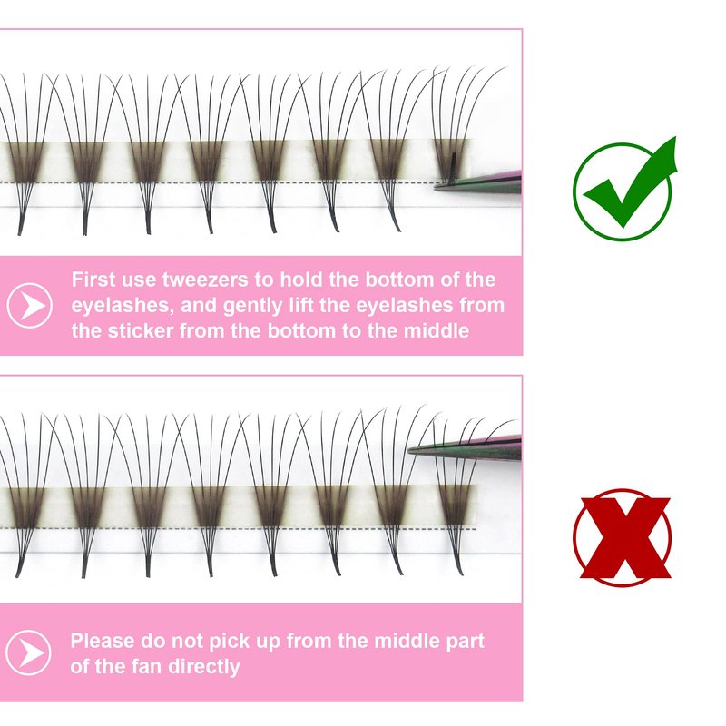 - Invisible Pointy Base : The premade fans with the latest technology would not fall apart when take them off lash strip at the base of the fans. The stickiness of the base would leave no clumps of glue on the strip and match perfect with people’s own lashes.
