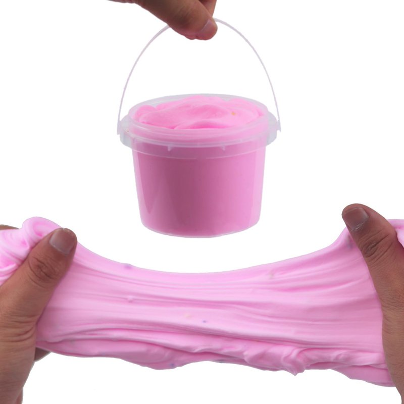 The slime is made of clay water and PVA glue which are safe for kids.There are also some slime charms such as unicorn,rainbow,icecream, foam balls, glimmer tubes,sugar paper and soft slices. 13OZ big bucket within more slime wil bring more fun than smaller ones.