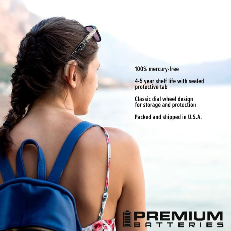 Premium Batteries zinc air hearing aid batteries are epecially designed for operation in both analogue & digital devices. Designed to operate in high drain devices and provide high and constant voltage for optimal service life. Protective tabs provide protection for the zinc air batteries to prevent premature battery drain and provide long shelf life. Classic package with convenient rotary dispenser which safely stores premium batteries to prevent unexpected removal of protective battery tabs.