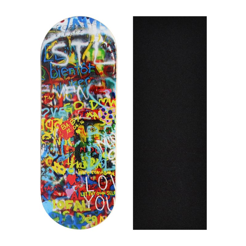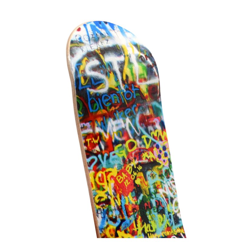 - PREMIUM HEAT TRANSFERRED GRAPHIC DECK || Premium quality, maple fingerboard deck with heat transfer "Graffiti Wall" graphic on the base. Real wear, true skateboard quality for realism and lasting design