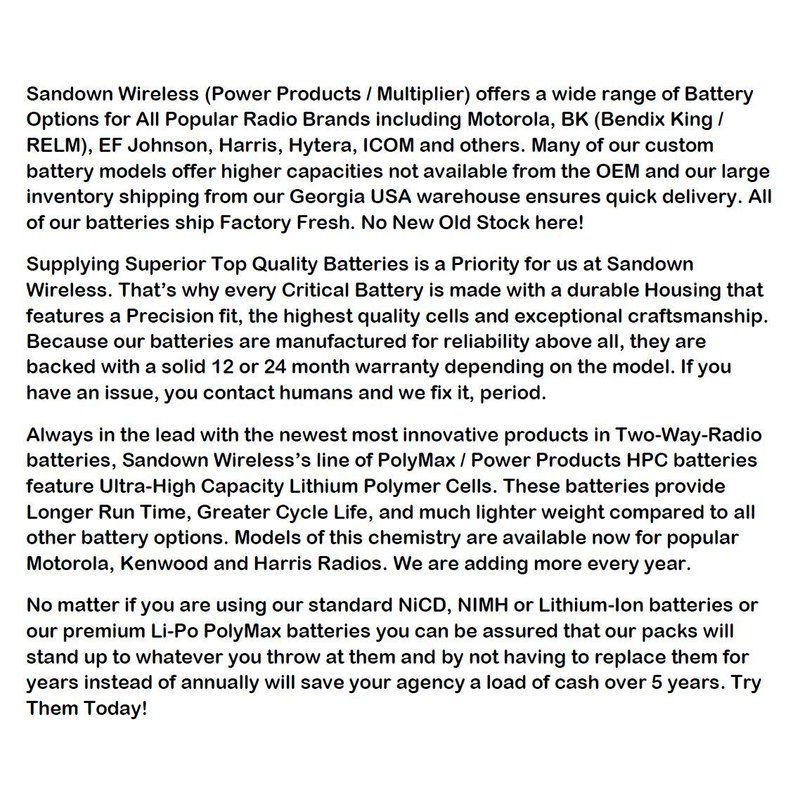 - This is the Highest Capacity, longest run time battery for these radios.