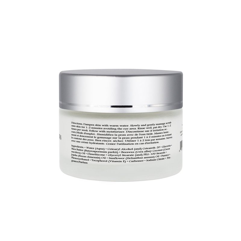 This scrub contains Shea Butter, Coconut Oil, Grapeseed Oil, Almond Oil, and Cocoa Butter. The Shea Butter moisturizes and cools/soothes the skin; it also improves skin elasticity and resiliency. The Coconut Oil smoothens wrinkles and causes the skin to feel firm and lifted. Coconut oil, Cocoa Butter and Grapeseed Oil also help tighten and firm the skin and reduce signs of aging. Almond Oil replenishes and protects the skin’s moisture barrier and keeps the skin soft and smooth throughout the day. It also helps reduce the appearance and look of wrinkles.
