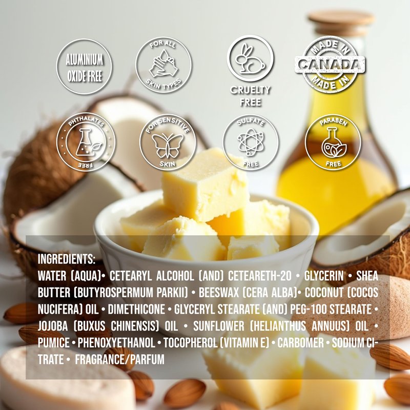 - Contains Shea Butter, Almond Oil, and Coconut Oil which: makes you skin look visibly younger, radiant, refreshed, energized, and rejuvenated; diminishes and reduces the look, or the signs of aging; makes wrinkles appear reduced; additionally, the Shea Butter which replenishes and protects the skin’s moisture barrier