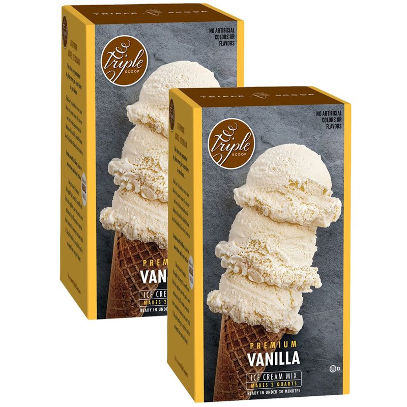 Turn your home into a gourmet creamery with Triple Scoop ice cream mixes. Each box makes two 1-quart batches of artisan quality ice cream.