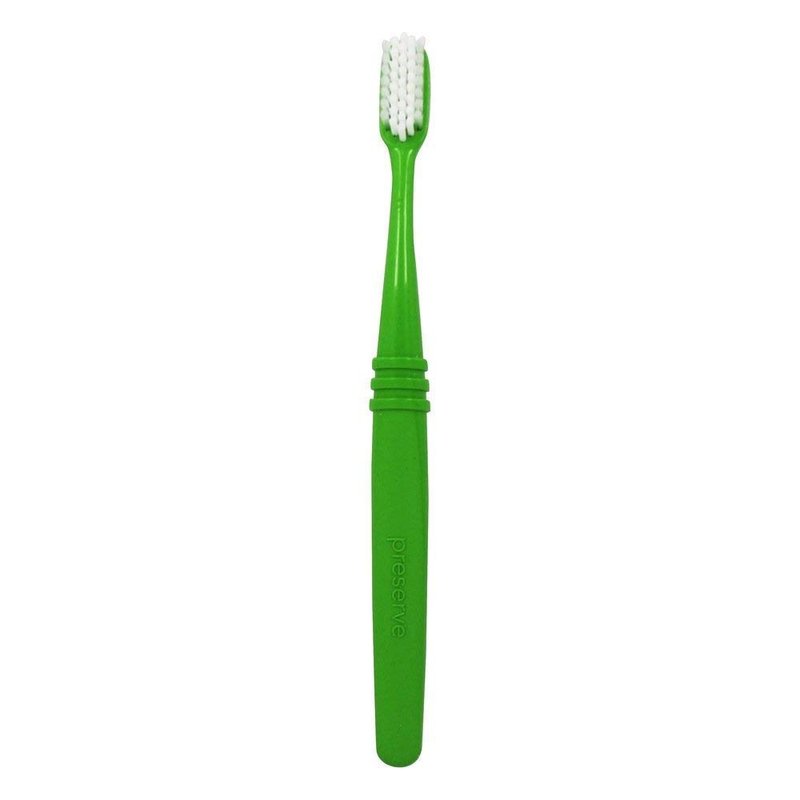 - Preserve Soft Bristle Adult Toothbrush -- 6 per case. Features Powered by recycled yogurt cups Handle 100% recycled #5 plastic; bristles new nylon Easy-to-grip curved handle Tiered bristles for gentle, thorough cleaning Completely recyclable after use Toothbrush replacement subscription service available BPA free Made in the USA Shlef Life: 999 days