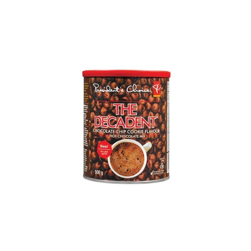 President's Choice Decadent Hot Chocolate Mix. Chocolate chip cookie Flavour. Curl up with a warm, satisfying cup of chocolatey goodness. Made with real cocoa for a creamy cup of chocolatey goodness. Features an extra rich flavor. Simply add hot water, stir and enjoy. Imported from Canada