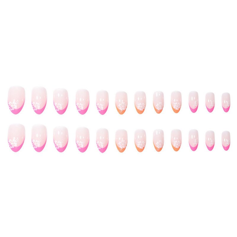 Press on Nails Almond False Nails Full Cover with Flower Designs Acrylic Nails Short French Tip Sticks on Nails for Women Girls Nails Supplies Decorations 24pcs