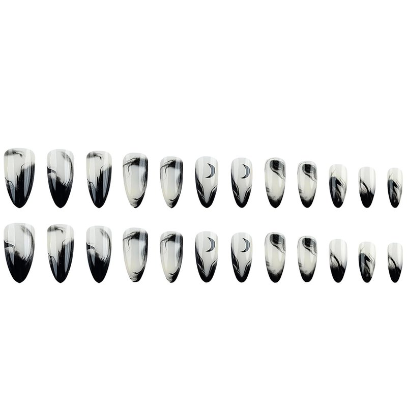 Press On Nails Short Almond OFDNE Black Fake Nails With Moon Designs False Nails Gradient Glossy Glue On Nails Stick On Nails Artificial Nails For Women Girls 24 Pcs