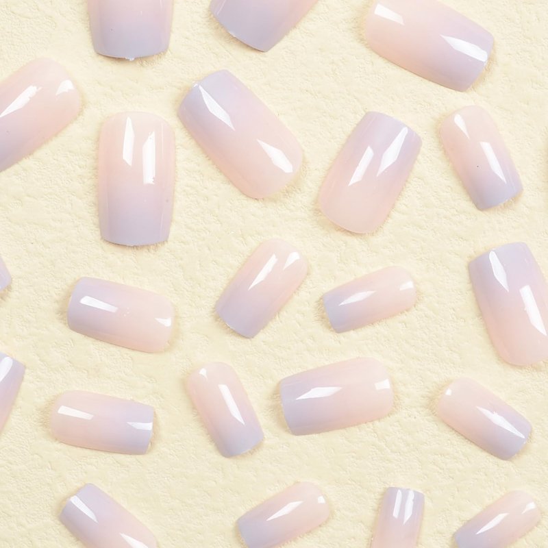 Press on Nails Short Fake Nails Coffin False Nails with Glue Purple Pink Gradual Nude Color Glue on Nail Foll Cover Stick on Nails For Women Girls 24PCS