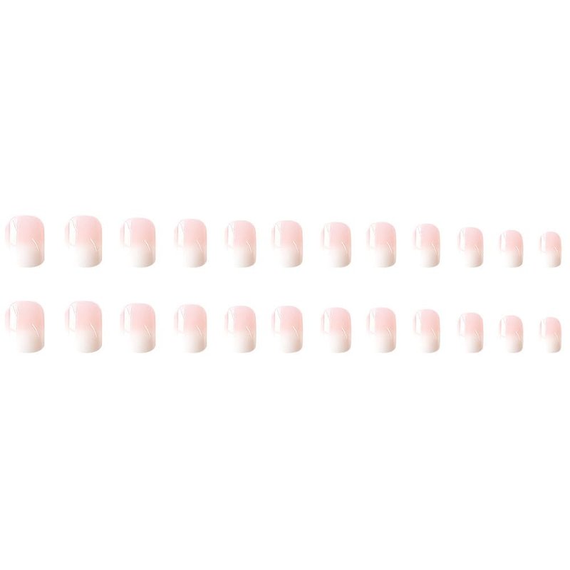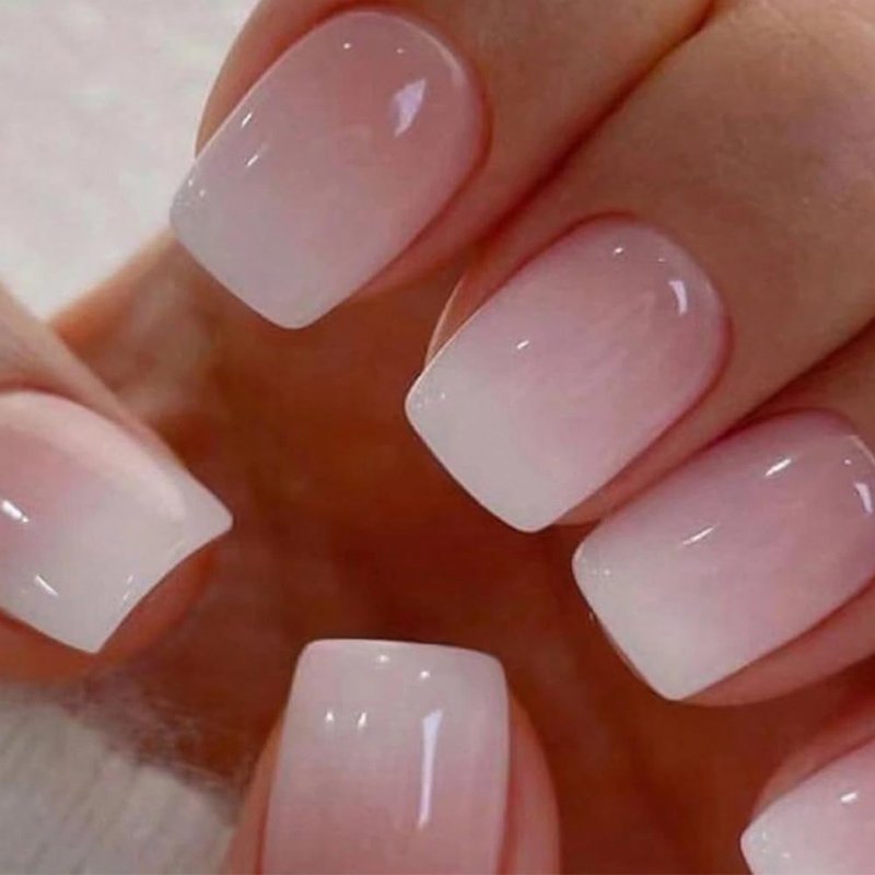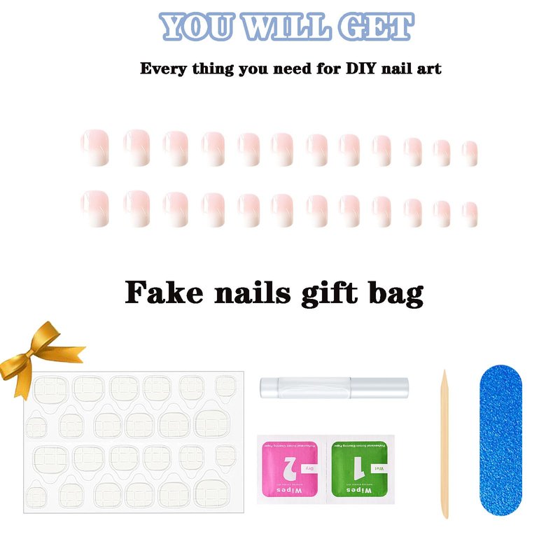 Press on Nails Short Fake Nails Square False Nails with White Ombre Press ons Designs Acrylic Nails Press on Artificial Nails Stick on Nails For Women Girls 24Pcs