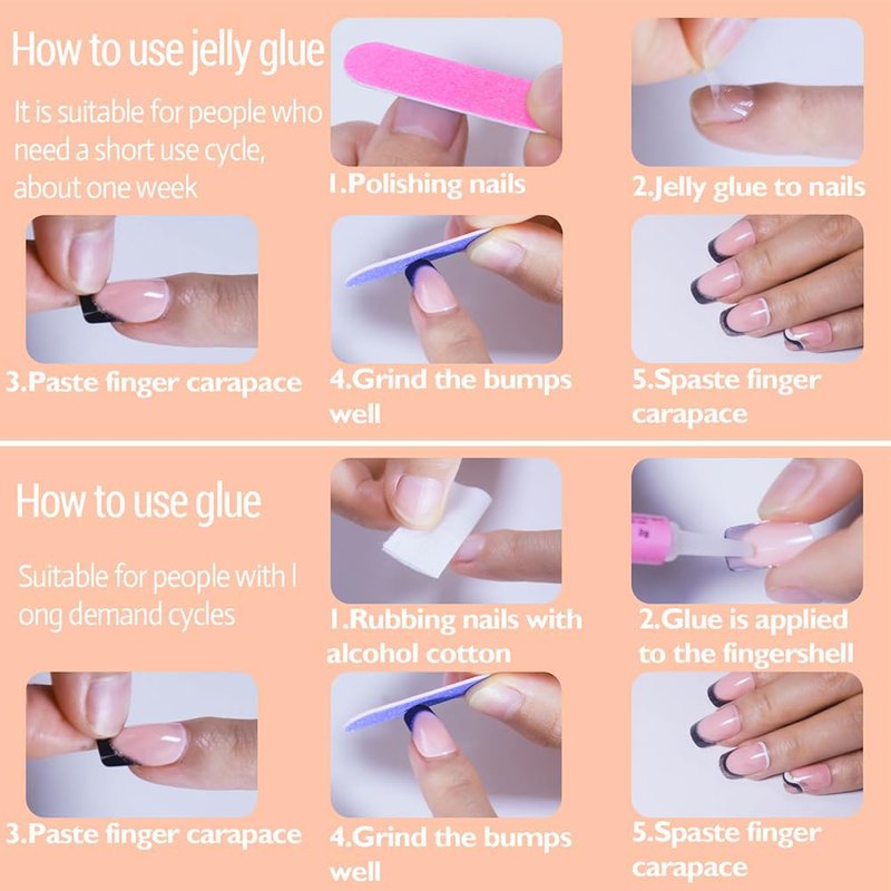 - 💕【Nails press on advantage】 press ons easy to wear and unloading Instead of spend lots time and money at nail salon, acrylic nails glue on, you can change you nails style in 15 minutes anytime and anywhere,suitable for experienced manicurists and learners.please note:The stick on nails fake nails will stay longer if you clean your nails before use, and avoid water within the first hour of wearing.