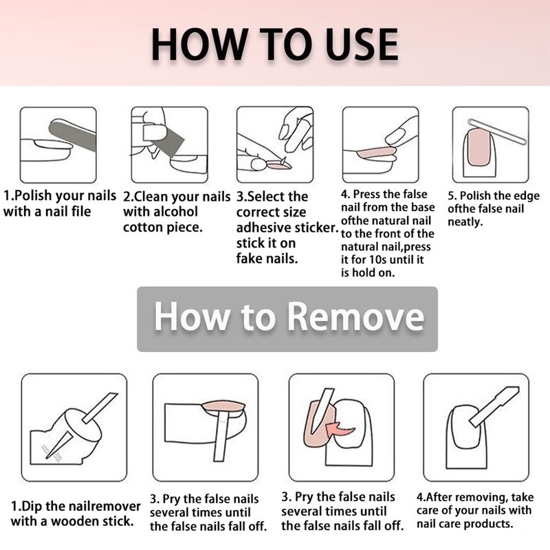 Tips:Do not remove it abruptly which may hurt you fake nails.