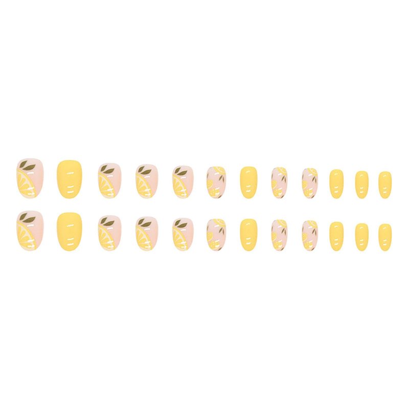 24 Pcs Press on Nails Short Round SWEKKE Summer Fake Nails Yellow Lemon Full Cover Glue on Nails