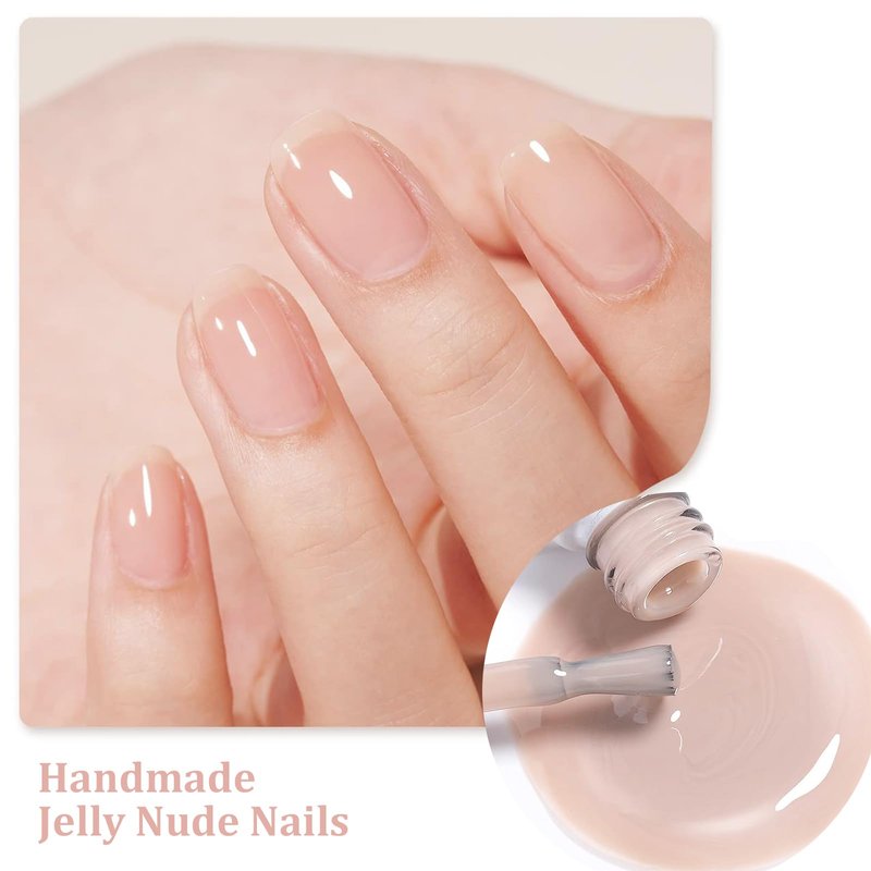 - Made by Gel Nail Polish: "The design is inspired by MNBB manicure :"My Nails But Better." semi-Transparent sheer jelly glossy nails that looks natural and complimentary towards your natural skin tone." Every one are made by handmade instead of printed with ink (Handmade Process: Base coat, color gel, pattern, top coat)