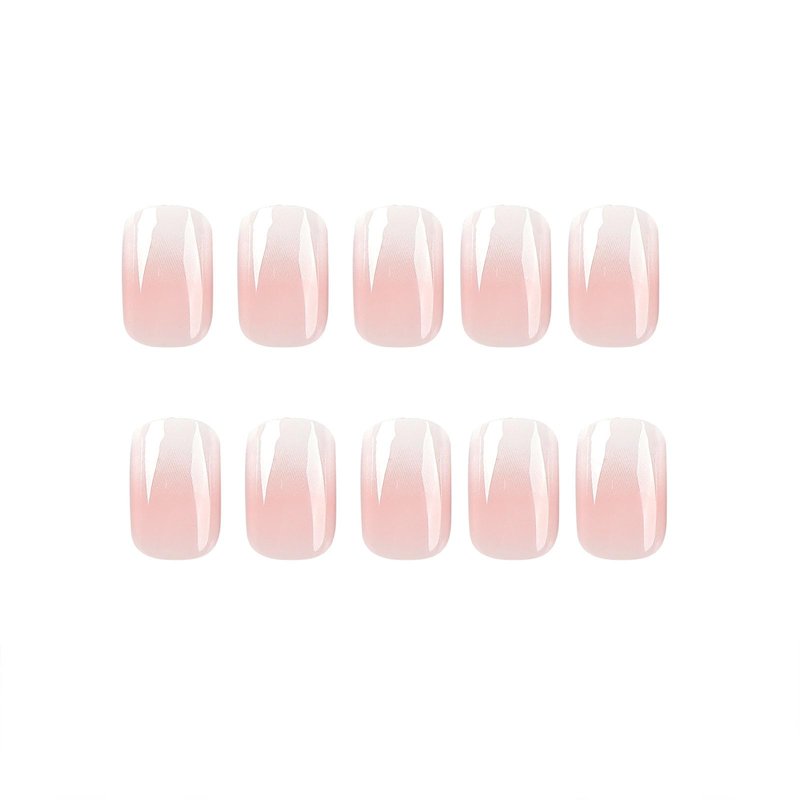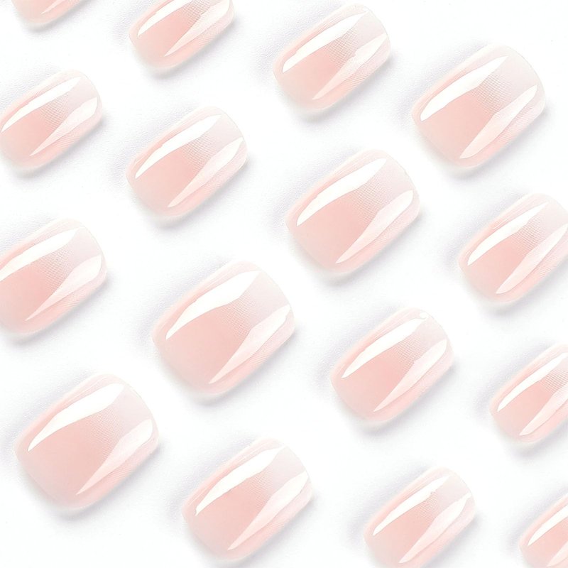 Press on Nails Short Square Fake Nails Press ons With Pink White Gradient Designs Simple Glue on Nails Full Cover False Nails Rtificial Acrylic Stick on Nails for Women 24 Pcs