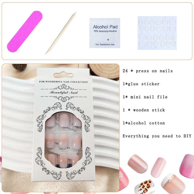- ✨Package includes: 24 short press on nails square of different sizes, 1 mini nail file, 1 small wooden stick and 1 nail glue sticker,Comes with everything you need for great application.