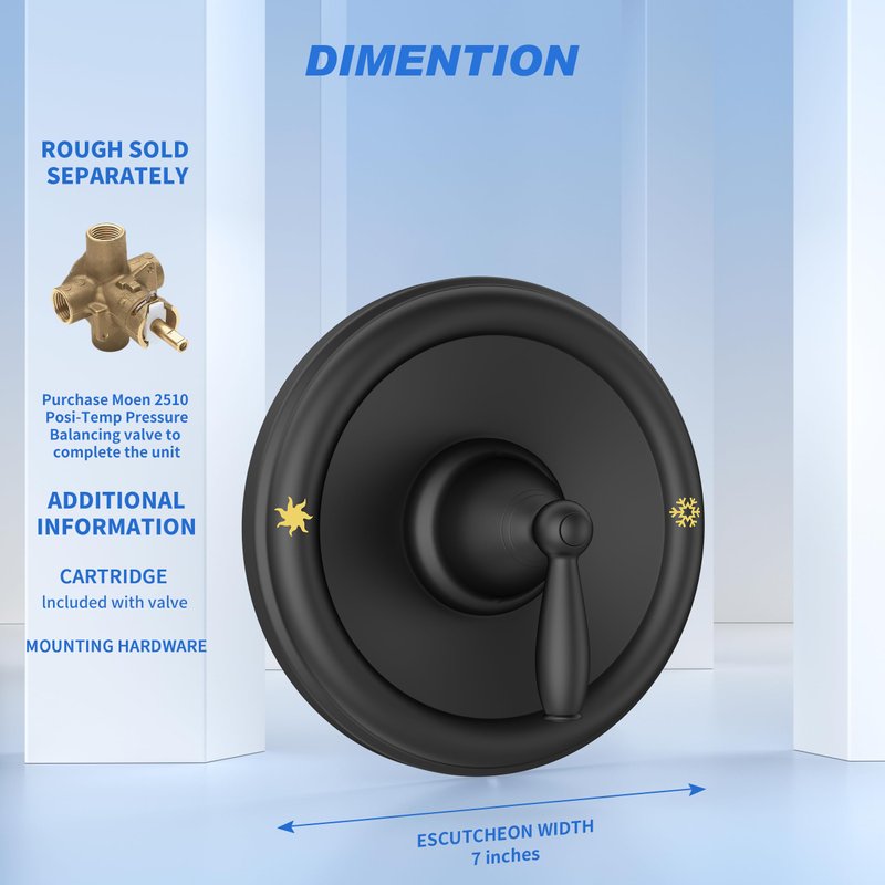 Pressure Balancing Tub and Shower Trim Kit, Compatible with Moen 2510 Shower Valve, Black