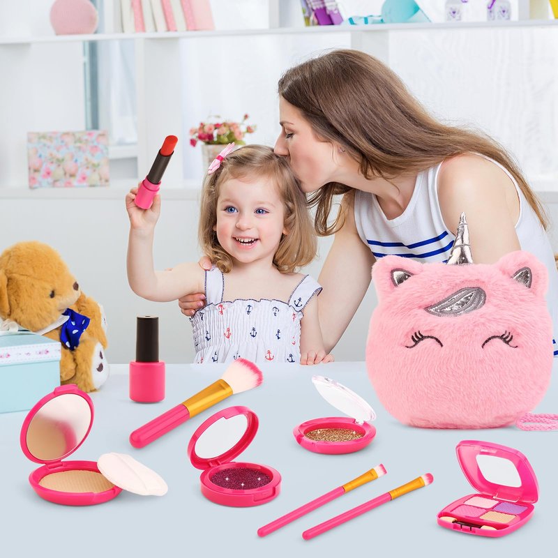 - SAFETY AND HIGH QUALITY: Crafted from non-toxic materials, our fake makeup for kids mimic the real thing without harming delicate skin. A safe first makeup kits for toddler aged 3 to 8.