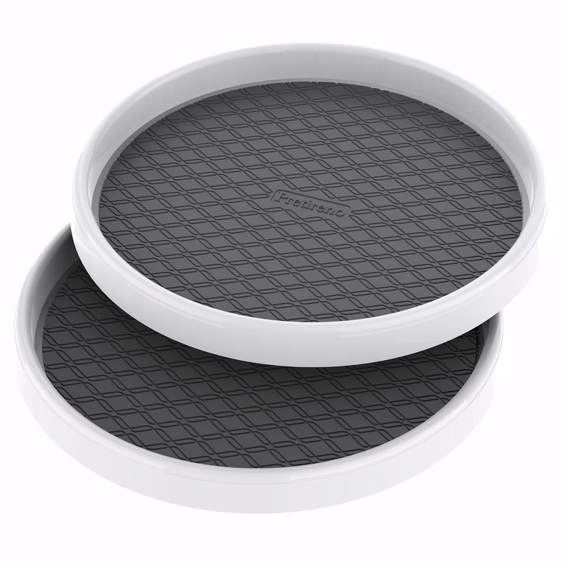 Pretireno Lazy Susan Turntable 2 Pack, Non-Skid Lazy Susan Organizer 10 Inch for Cabinet, Pantry, Kitchen, Countertop, Vanity Display Stand White/Gray