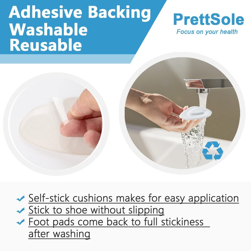 - SOF, WASHABLE, REUSABLE -- PrettSole latex free metatarsal pads are made of medical grade silicone gel, they’re very soft and will give you long lasting comfort with shoes. They’re washable and reusable, making it a good value for you.