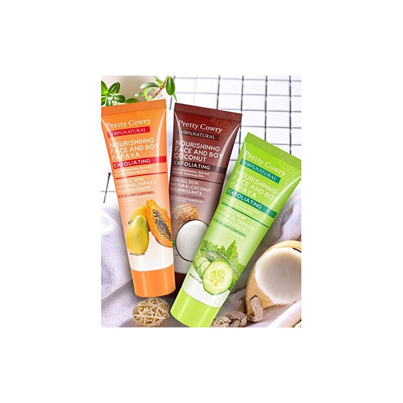 Pretty Cowry Exfoliating Peel Gel With Coconut/Papaya/Cucumber/Extract Face And Body Facial Exfoliator Instantly Removes Dead Skin Cells Revealing A Clear Refreshed Face, 100ml (Papaya)