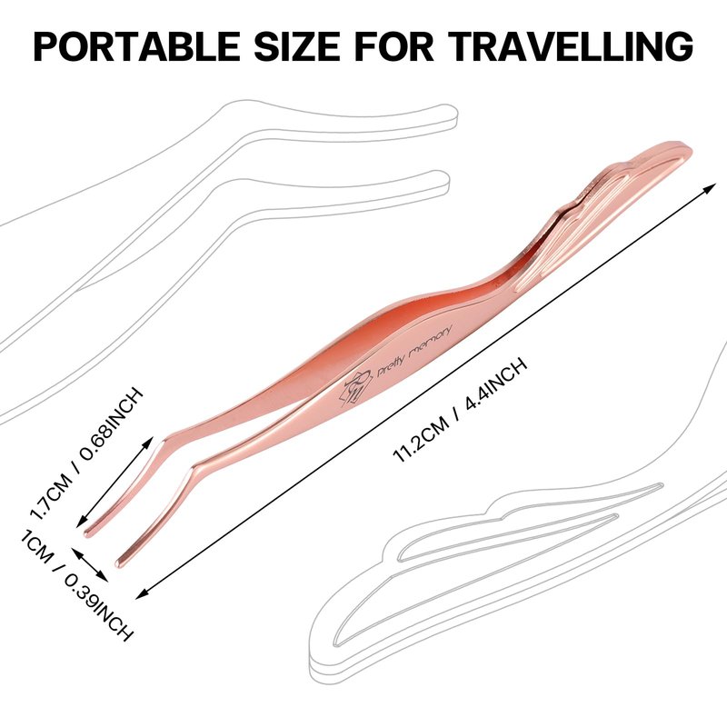 Pretty memory Eyelash Applicator Tool Stainless Steel Lash Tweezers Curved Eyelash Tweezers for Easy Lash Application and Removal, Rose Gold