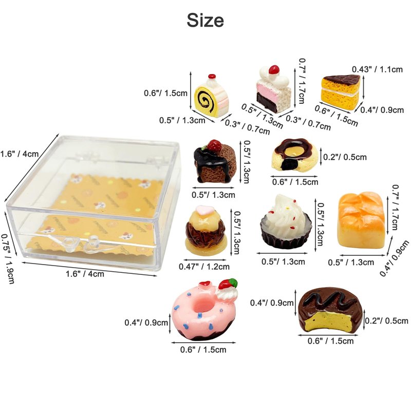 - 【Multi Styles & Sizes】 Miniature dessert is in 10 different styles with size from 0.6" x 0.4" x 0.2" to 0.7" x 0.5" x 0.4"(Length x Width x Height), suitable for 1:6 or 1:12 dollhouse décor, allow you to DIY your miniature dollhouse projects according to your imagination