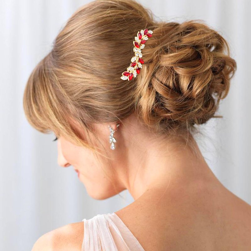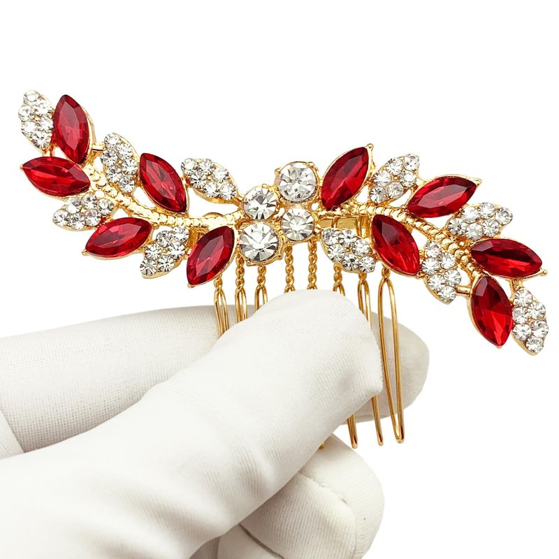 PRETTYLIFE Bridal Crystal Hair Comb Small Wedding Alloy Rhinestone Party Prom Hair Piece Accessories Elegant for Women Girls (Red + Gold)