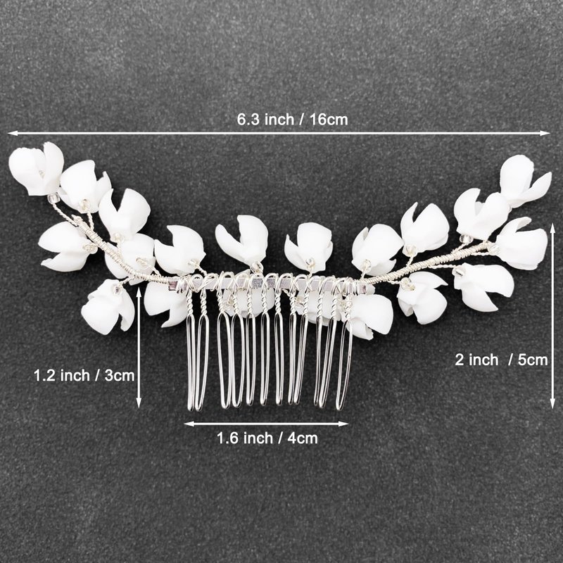 - 【Size】 The ceramic flower bridal side comb is 6.3" x 2" (Length x Height) in size, the length of the alloy comb is approx. 1.6", free size for women and girls, good assistant for DIY your own hairstyle