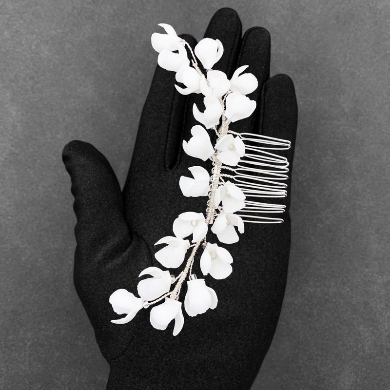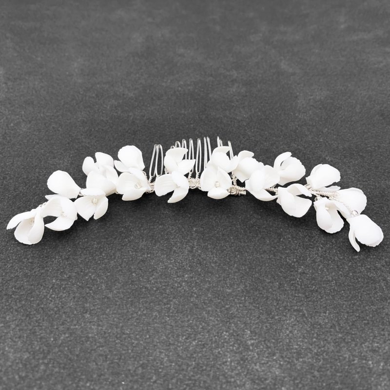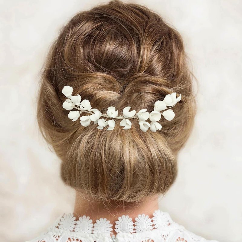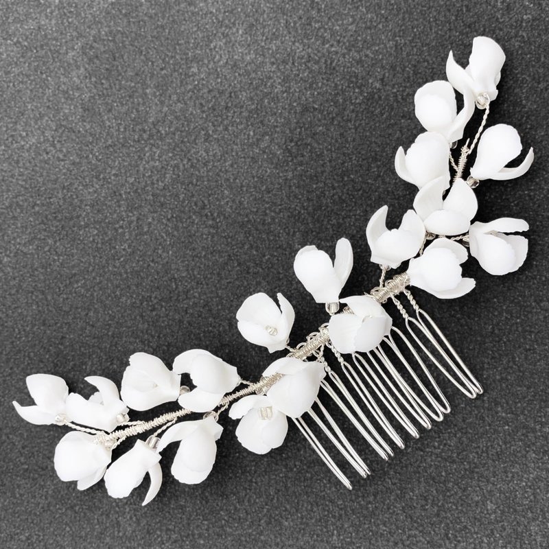 White ceramic flowers will not fade, elegant and delicate hair piece for wedding, prom and any special occasions.