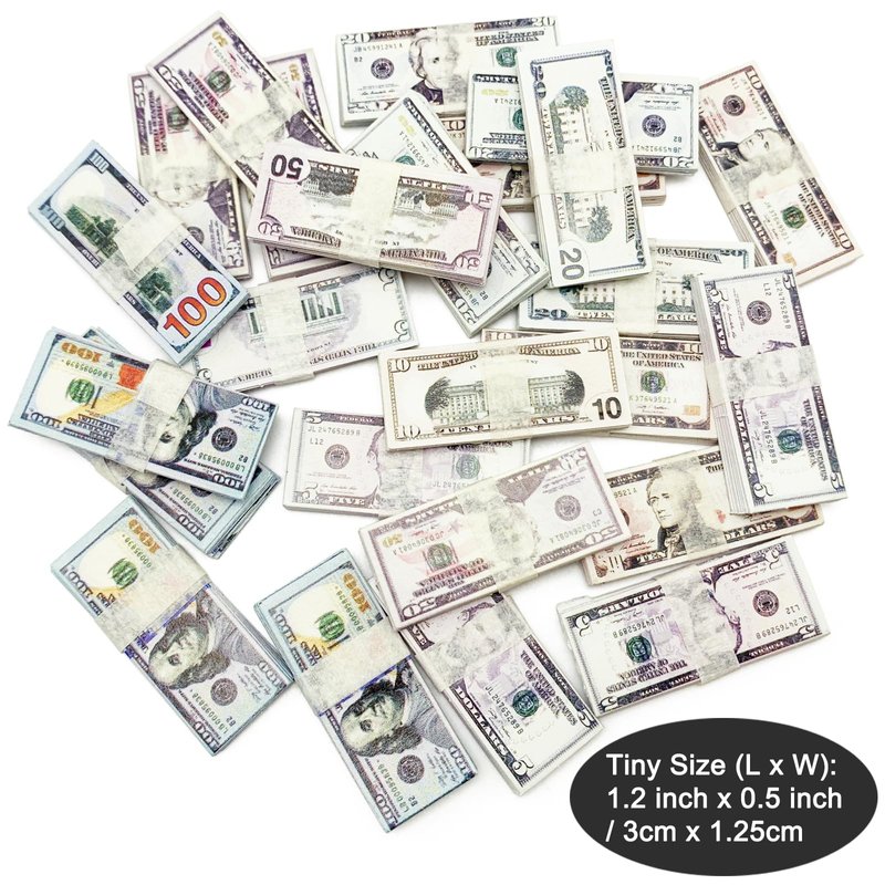 - 【What You Will Get】 Come with 500 pieces of miniature play prop (100pcs mini hundred-dollar bill + 100pcs mini fifty-dollar bill+ 100pcs mini twenty-dollar bill+ 100pcs mini ten-dollar bill+ 100pcs mini five-dollar bill), meet your needs of dollhouse decorating DIY