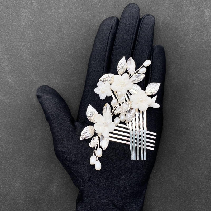 - Material: High quality alloy wire & leaf, clay flower, faux pearl, rhinestone