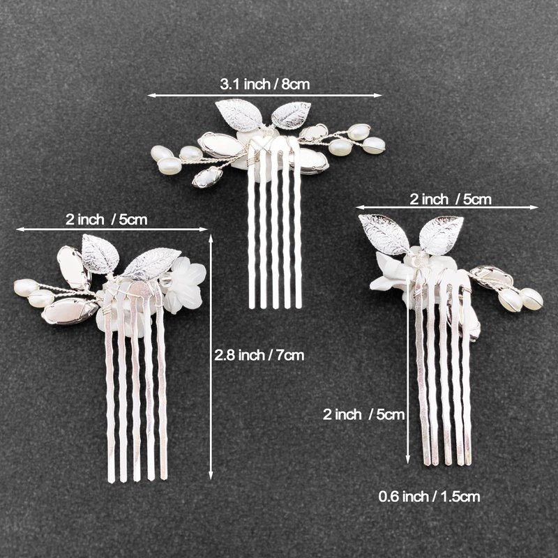 - 【Size】 The leaf white flower bridal side combs with 2 sizes (2" x 2.8" , 3.1" x 2.8") (Length x Height), the height of the alloy comb is approx. 2", free size for women and girls, good assistant for DIY your own hairstyle