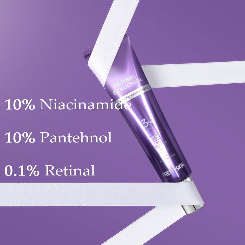 PRETTYSKIN Retinal Bakuchiol At-home Night Cream Moisturizer for Face | Reduce Wrinkles & Fine lines, Elasticity, Tone-up, Anti-aging, Centella Asiatica Extract 30%, Retinal 1,000 ppm (30g)
