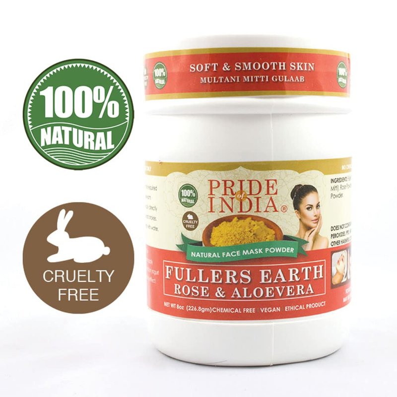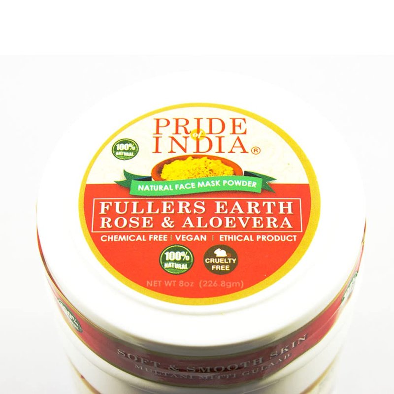 Pride Of India - Fuller's Earth Indian Clay Face Mask Powder w/Rose & Aloevera, Half Pound Jar, 100% Natural