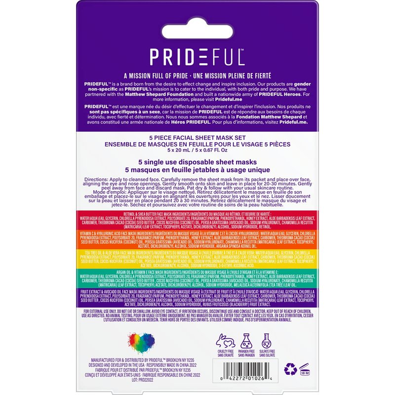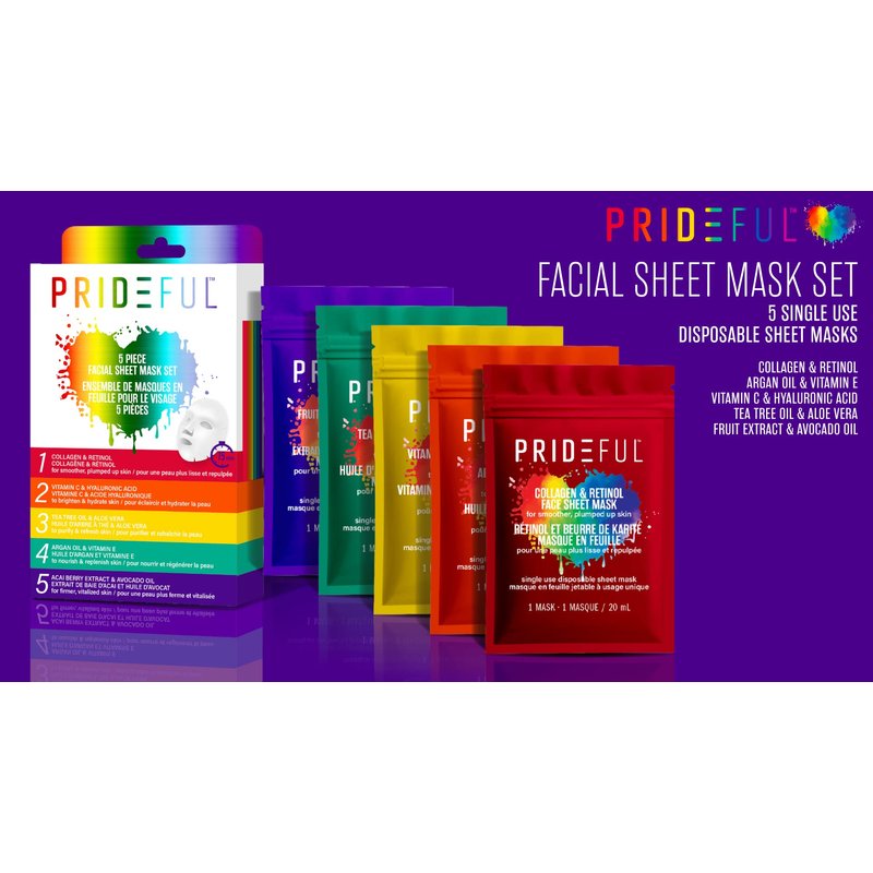 5 single use disposable sheet masks Masks Included: Collagen & Retinol - for smoother plumped up skin Vitamin C and Hyaluronic Acid - to brighten and hydrate skin Tea Tree Oil & Aloe Vera - to purify and refresh skin Argan Oil and Vitamin E - to nourish and replenish skin Fruit Extract & Avocado Oil - for firmer, rejuvenated skin Carefully remove the sheet mask from its packet and place over face aligning the eye and nose openings . Gently smooth onto skin and leave in place for 20-30 minutes. Gently peel away from face and discard mask.