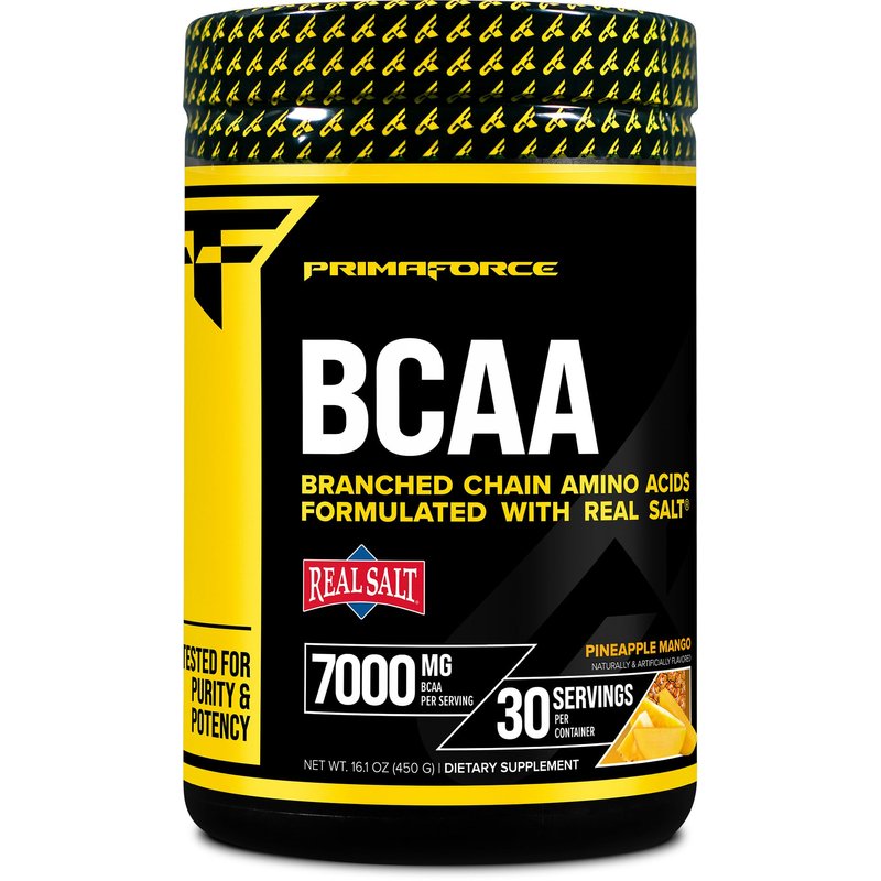 Primaforce BCAA Powder (Pineapple Mango) (30 Servings) - 7000MG 2:1:1 BCAAs, Post-Workout Recovery Drink with Amino Acids and Real Salt for Men & Women