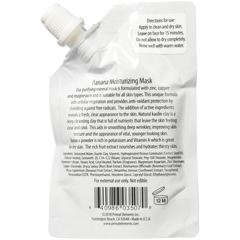 Primal Elements Face Mask, Clay Mud Facial Treatment, Multi-Use Package, 1.18 oz - Banana Moisturizing