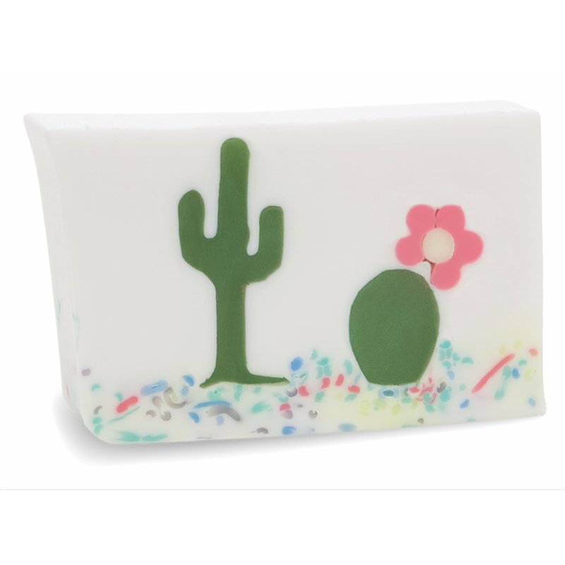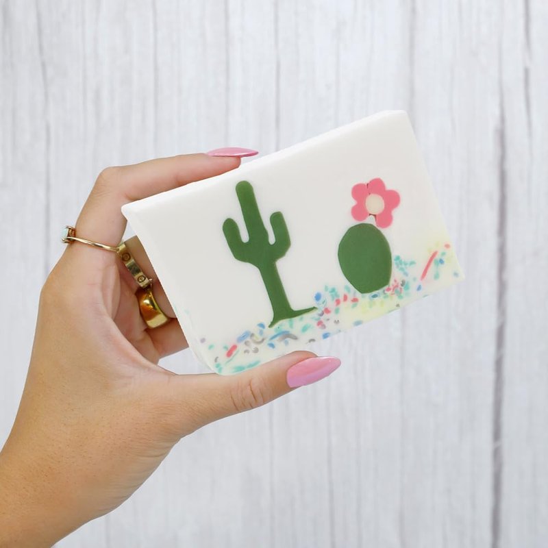 Fresh sparkling fruits and gentle desert flowers wrap around Saguaro Cacti in the pastel painted desert. Our glycerin soaps are devoid of alcohol and other harmful chemical substances that might irritate your skin. Our soap contains over 25% vegetable glycerin, which helps lock your skin’s natural moisture and keeps it from drying.