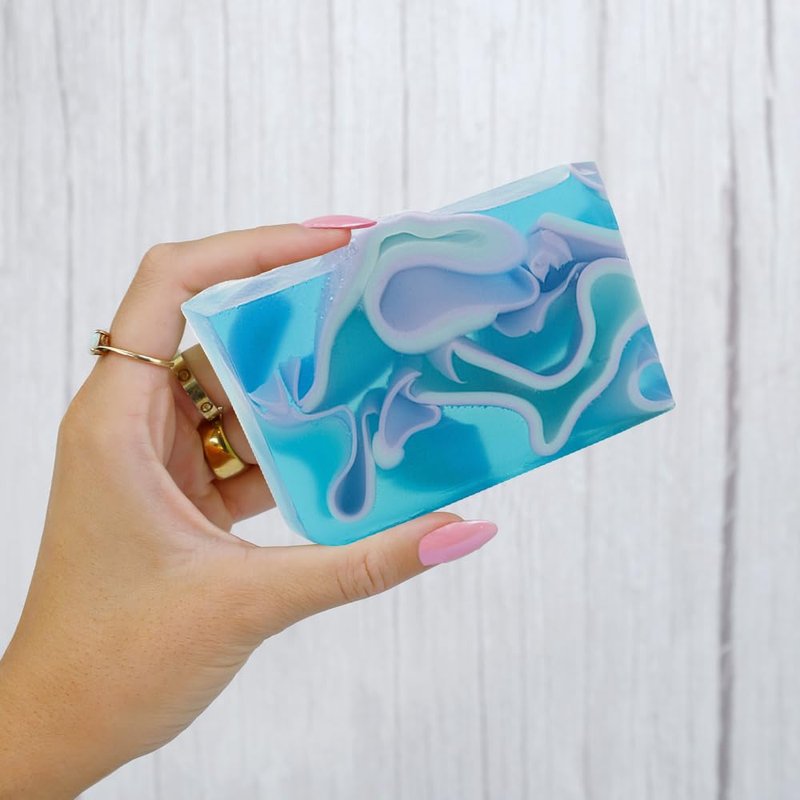 Notes of bergamot, sparkling cassis water lotus and exotic musk. Our glycerin soaps are devoid of alcohol and other harmful chemical substances that might irritate your skin. Our soap contains over 25% vegetable glycerin, which helps lock your skin’s natural moisture and keeps it from drying.
