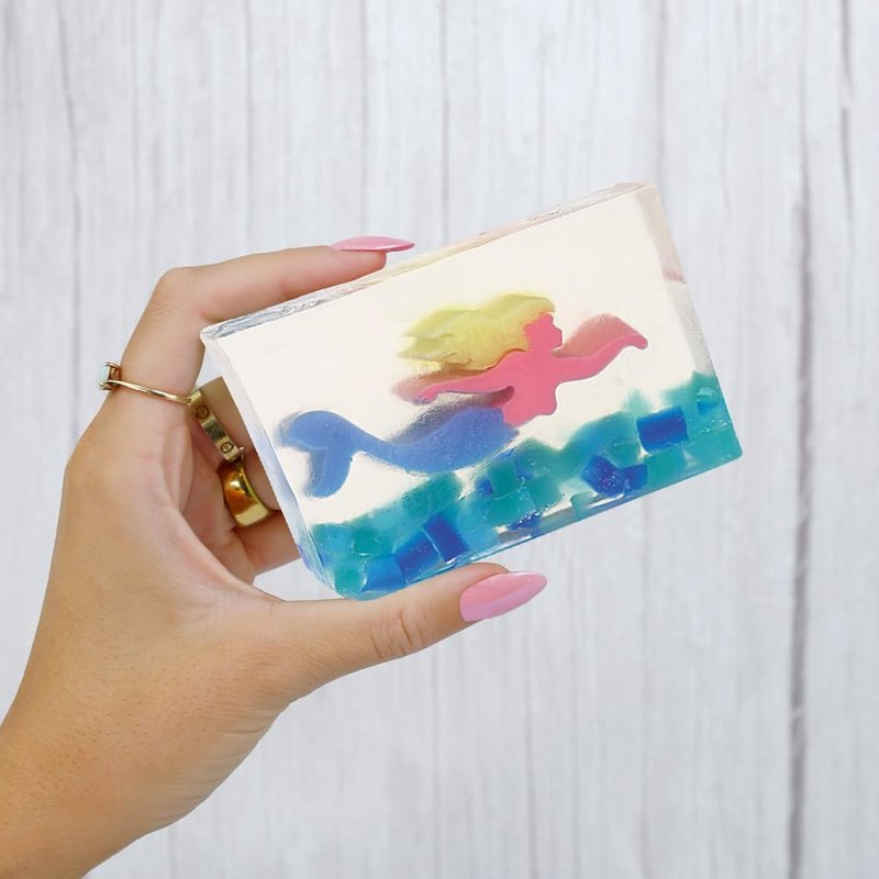 Juicy citrus and fresh florals swim through this aqua fresh bar. Our glycerin soaps are devoid of alcohol and other harmful chemical substances that might irritate your skin. Our soap contains over 25% vegetable glycerin, which helps lock your skin’s natural moisture and keeps it from drying.