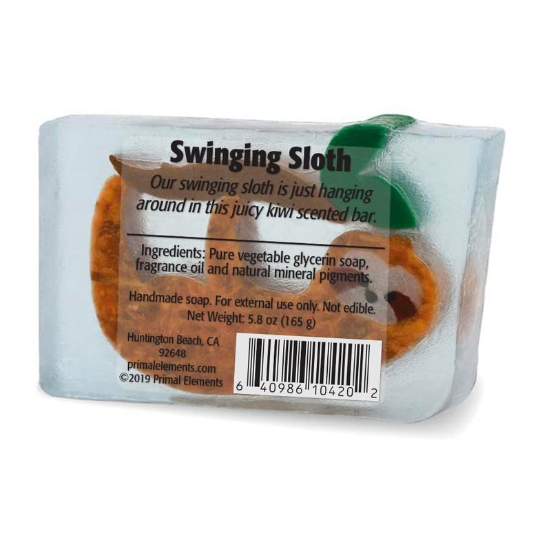 Primal Elements Glycerin Bar Soap | Helps All Skin Types, Sensitive, Oily & Dry Skin | NO PARABENS, VEGAN, GLUTEN FREE, 100% VEGETABLE BASE - (Swinging Sloth)