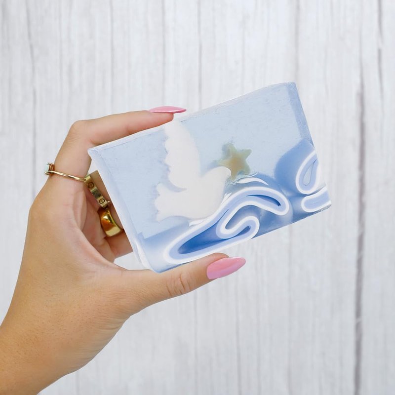 A dove above the clouds. An elegant bar with a clean, clear scent. Our glycerin soaps are devoid of alcohol and other harmful chemical substances that might irritate your skin. Our soap contains over 25% vegetable glycerin, which helps lock your skin’s natural moisture and keeps it from drying.